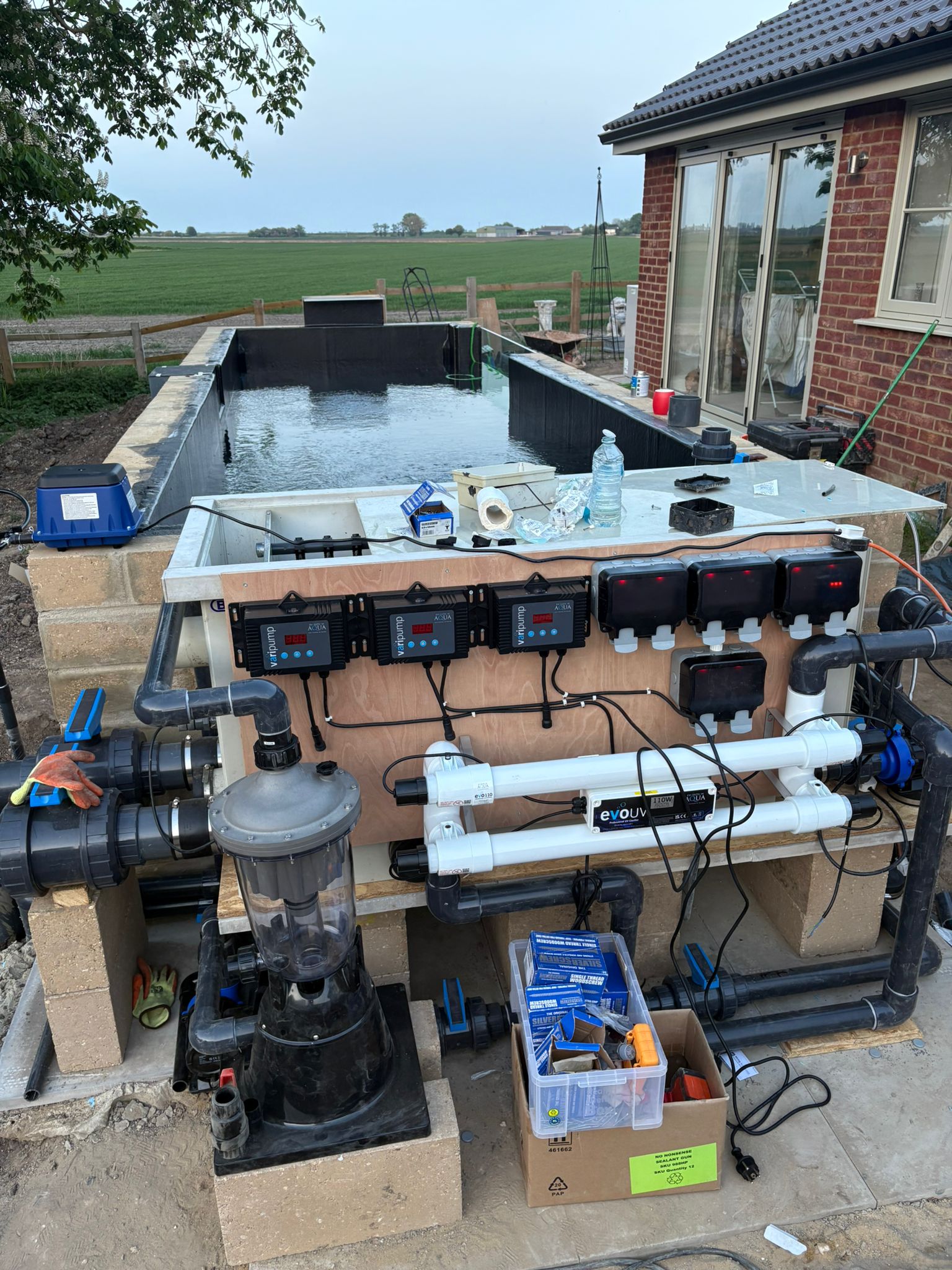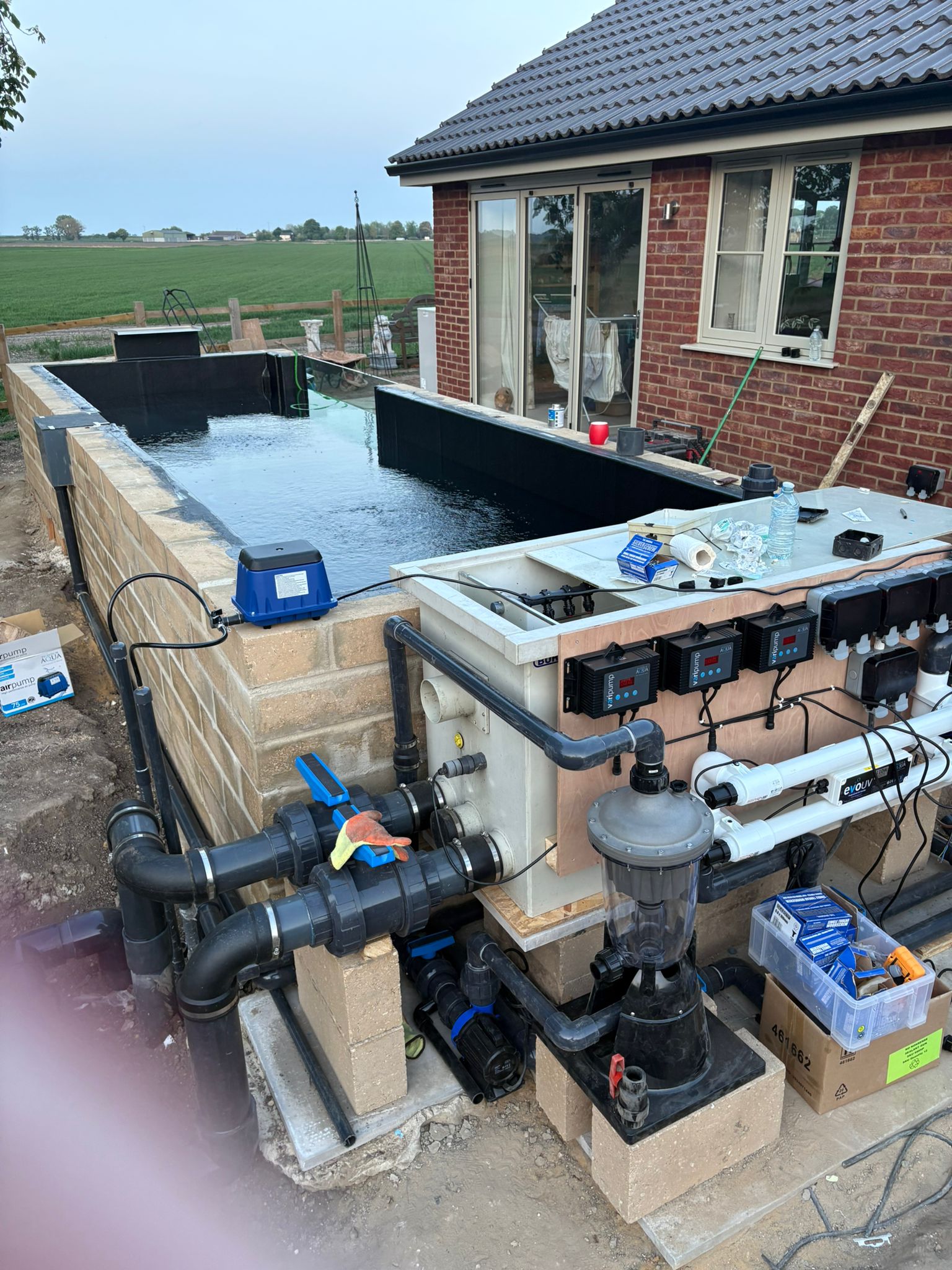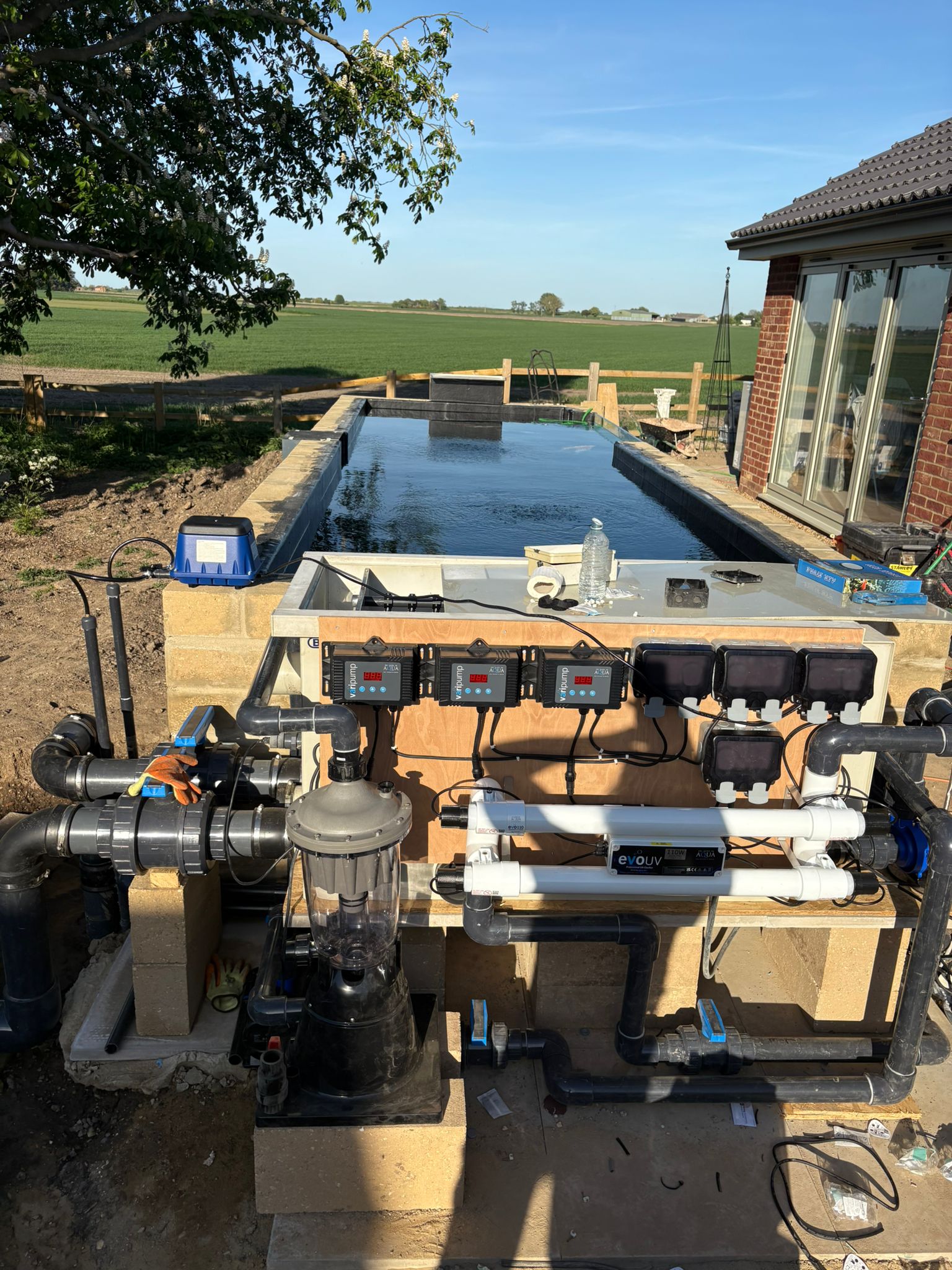 So, why did we choose Sarah? Well it was her attention to detail that first drew me to her work. There are videos of the ponds that Sarah has built, including her pipe work which is very neat. It was evident from comments made by others that they respect Sarah’s knowledge and workmanship and so I contacted Sarah. She quickly responded with some quotations, making everything very clear so we understood just what we would get. Over the course of the following six weeks we had several discussions with Sarah to discuss just what we wanted to achieve and she totally understood and locked into our vision. I should add that Sarah gave me so much confidence in her expertise that I didn’t attempt to get any other quotations (something previously unheard of for me).
