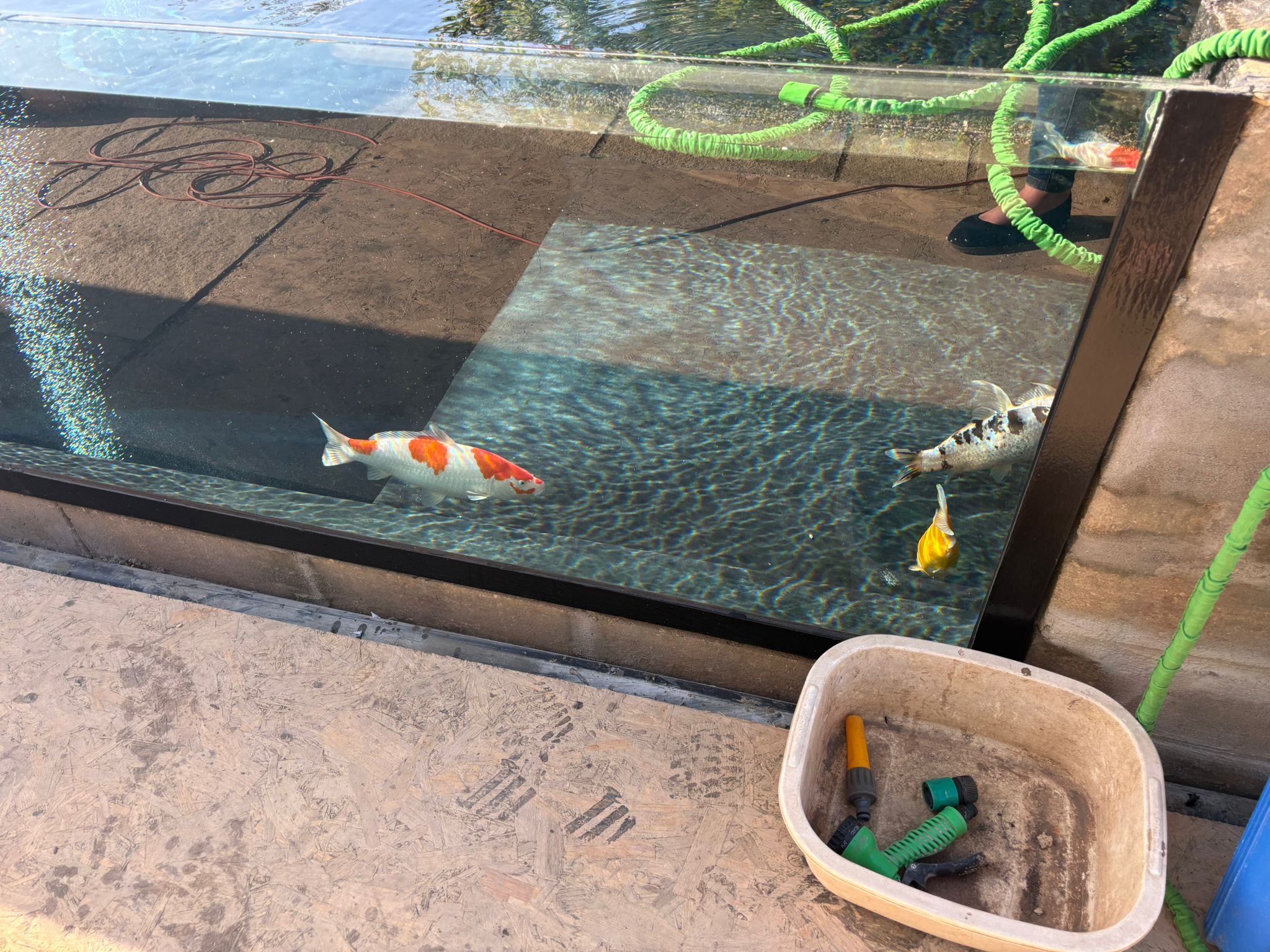 We were very lucky with the weather and so, six weeks after the pond was started, Sarah helped us move our koi to their new home. She showed us how to catch them and transport them without causing too much stress. They are all now settled and loving their new home which is in no small part due to Sarah. Sarah gives her advice freely when you ask for it and knows who to contact for supplies. She also uses the services of a fabulous fibreglass company who were quick to point out that Sarah’s work is second to none, making their job much easier.