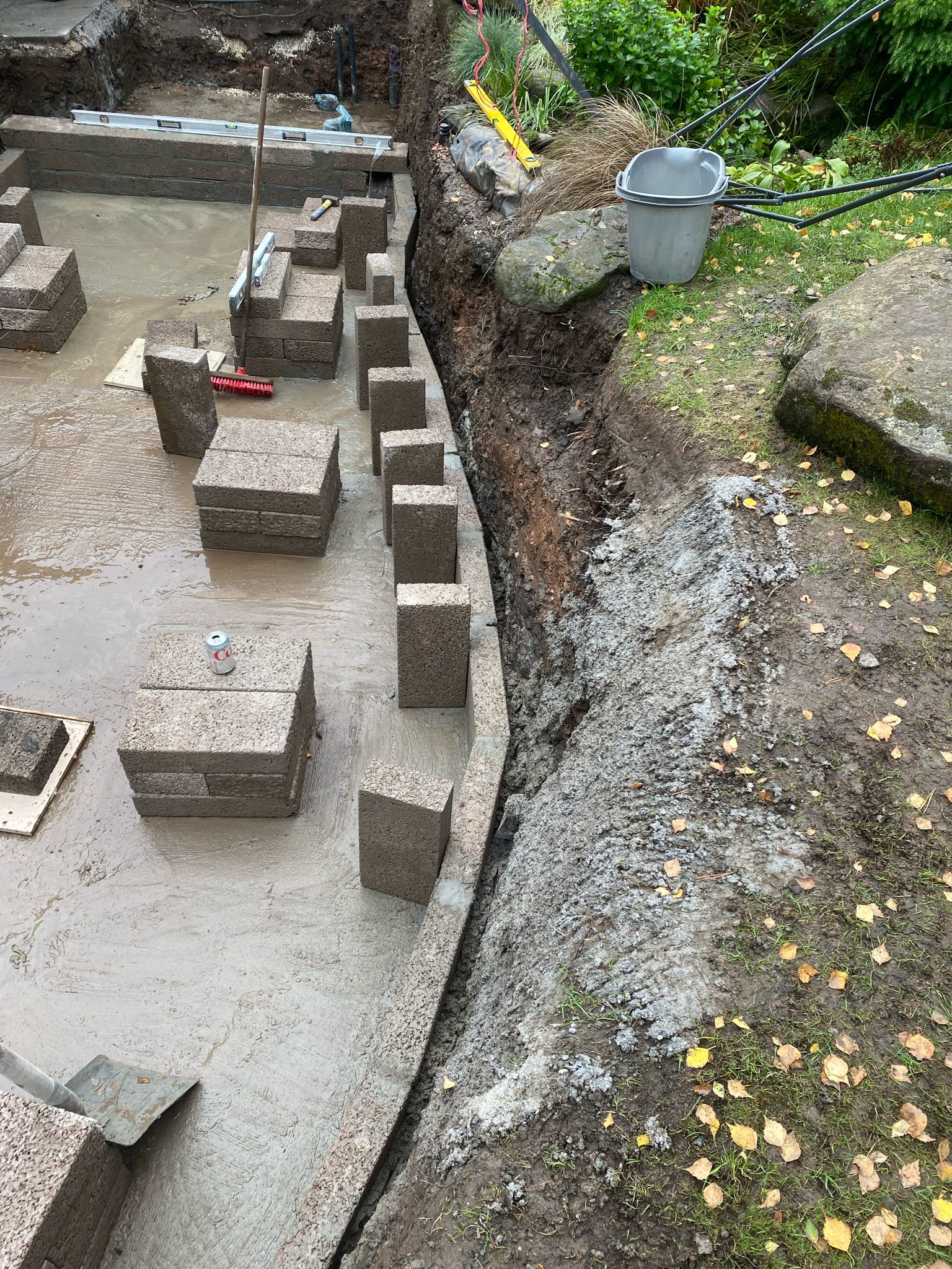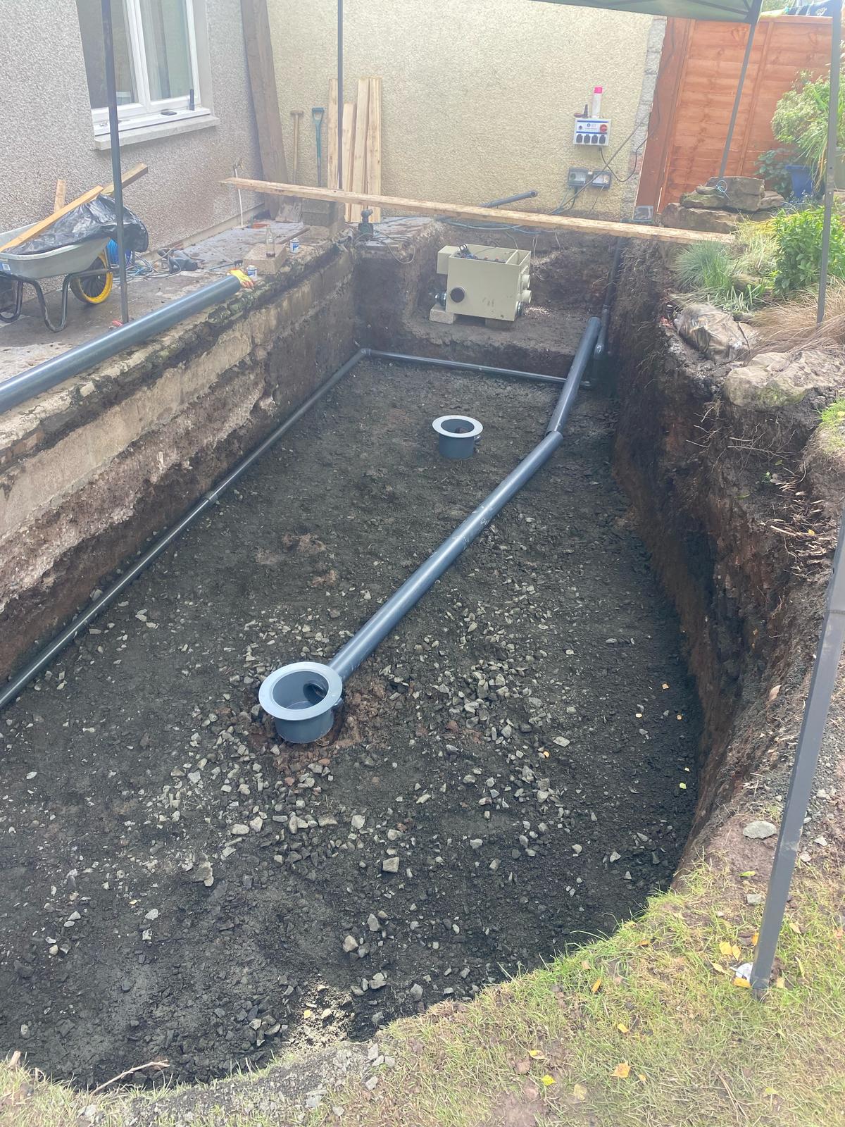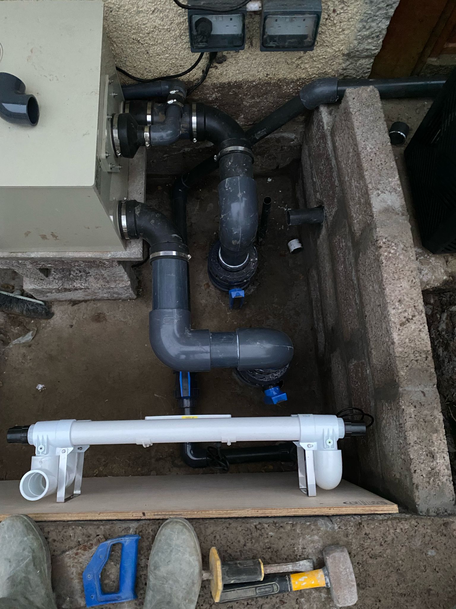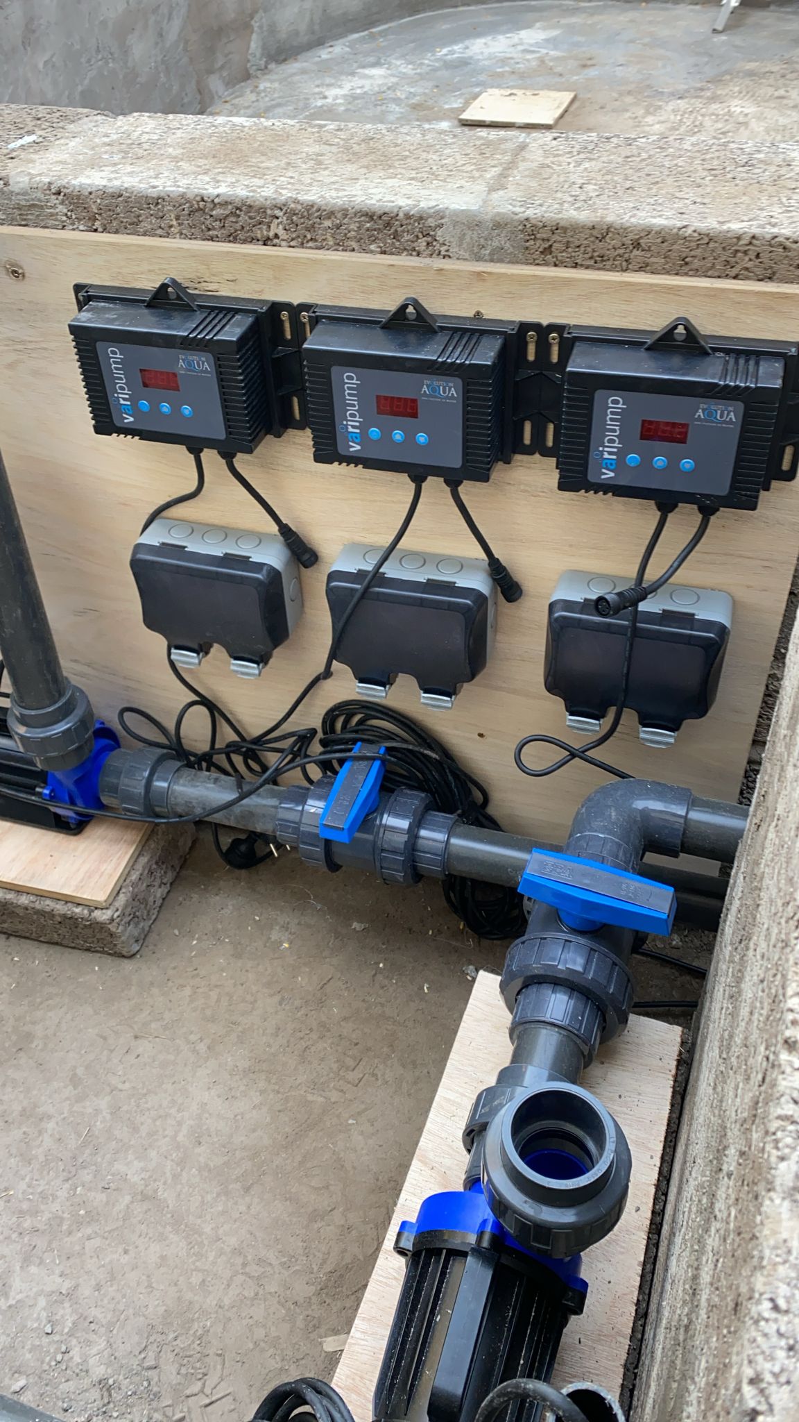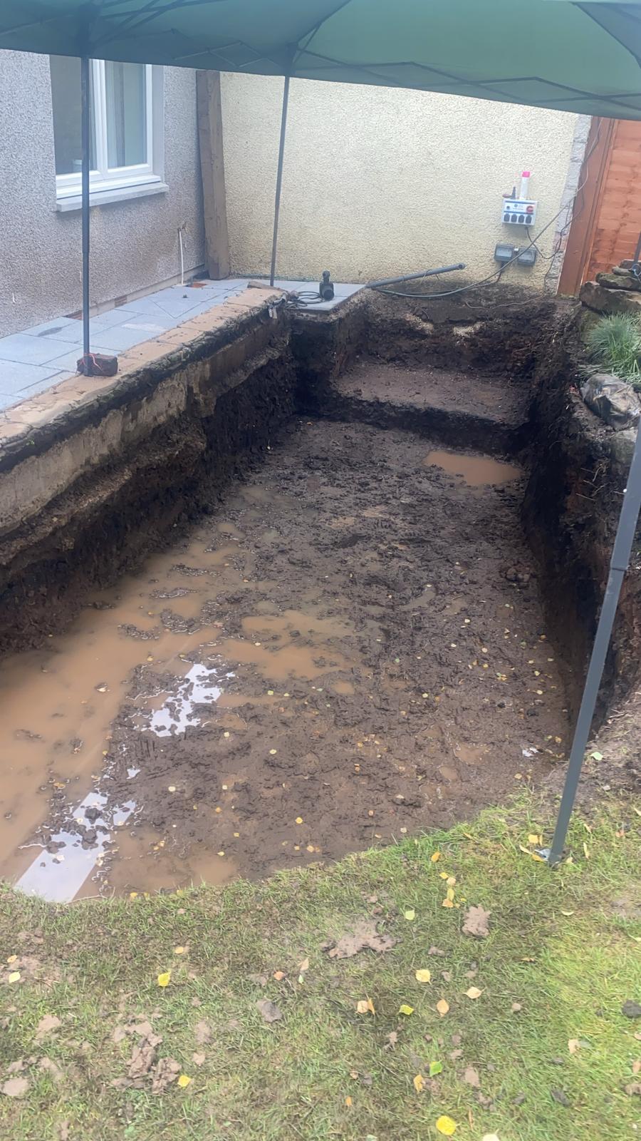 A stylish koi pond with a glass panel, integrated into a modern decked seating area for a relaxing outdoor space.